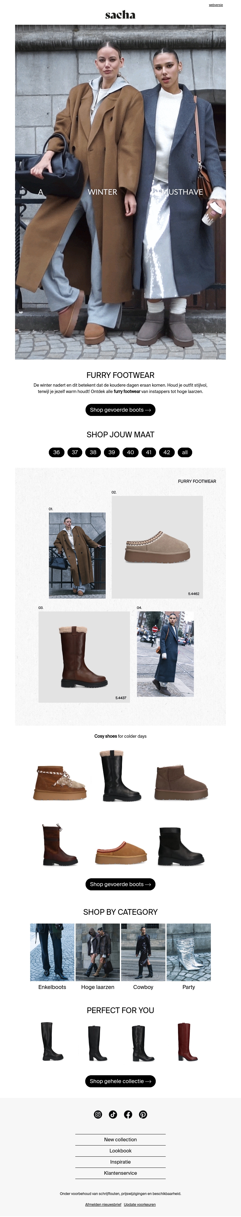 De winter komt eraan en dat betekent warme en stijlvolle kleding. Deze nieuwsbrief van Sacha introduceert een prachtige collectie gevoerde boots. Ontworpen om je warm te houden zonder stijl in te leveren. Bekijk verschillende modellen en maten beschikbaar om aan je voorkeuren te voldoen.