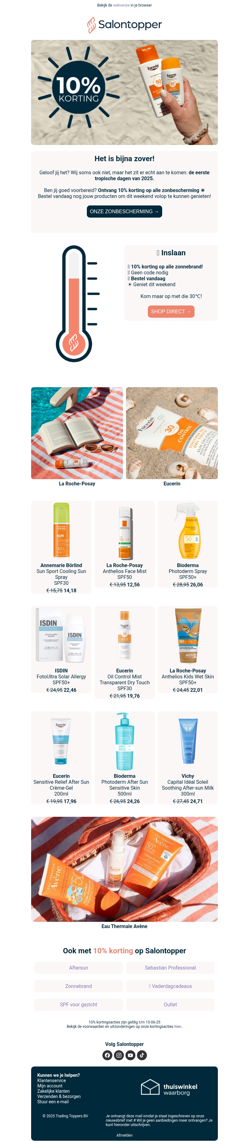 De eerste tropische dagen komen eraan ☀️ Scoor nú jouw zonbescherming met 10% KORTING