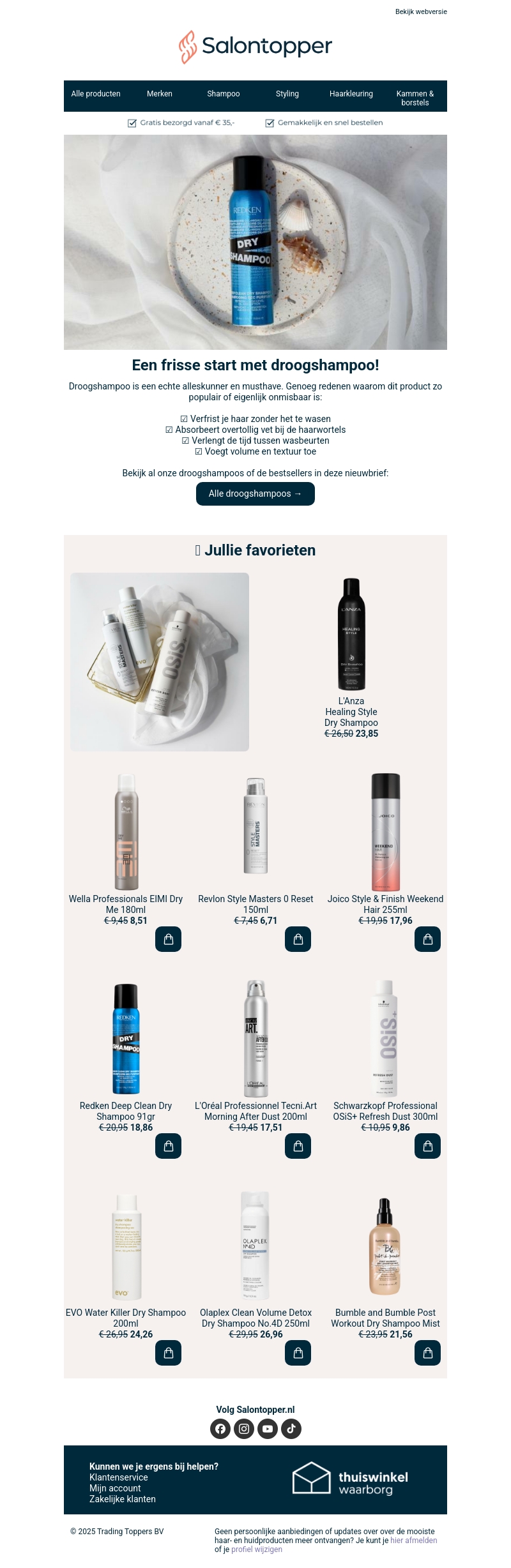 Droogshampoo is een veelzijdige must-have. Geniet van verfrissing zonder water en verleng je wasbeurt. Deze nieuwsbrief toont topkeuzes van merken als Redken en L'Oréal. Ideaal voor volume en textuur. Ontdek de voordelen en maak je dagelijkse routine makkelijker.