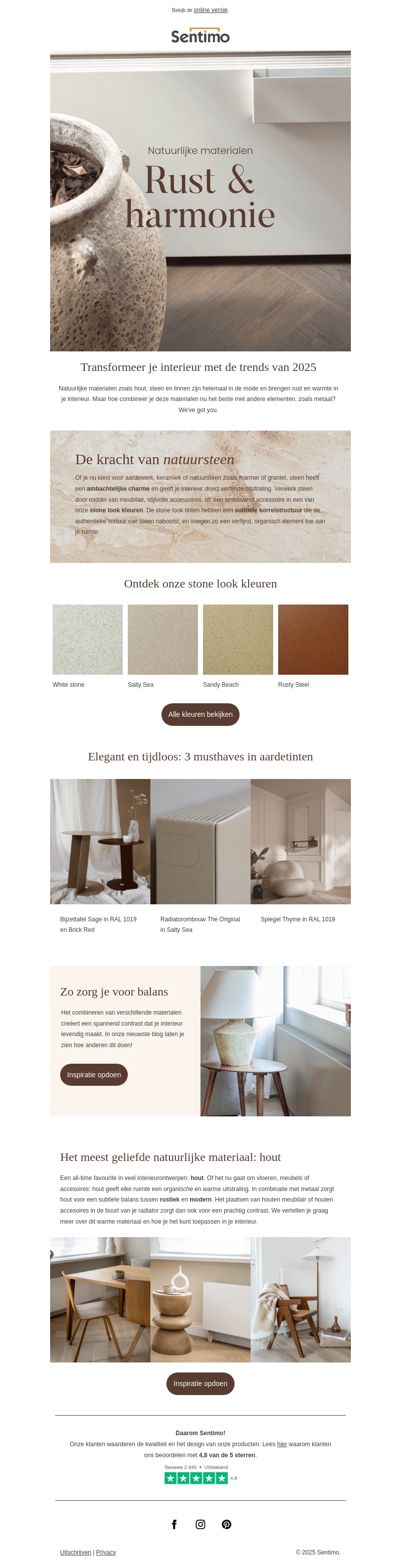 Verken de interieurtrends van 2025 met natuurlijke materialen zoals hout, steen en linnen. Deze tijdloze elementen bieden rust en warmte, perfect voor een serene woonruimte. Ontdek elegante kleurenpaletten en leer hoe je materialen stijlvol kunt combineren om je interieur uniek te maken. Laat je inspireren door onze musthaves en creëer een harmonieus thuis.