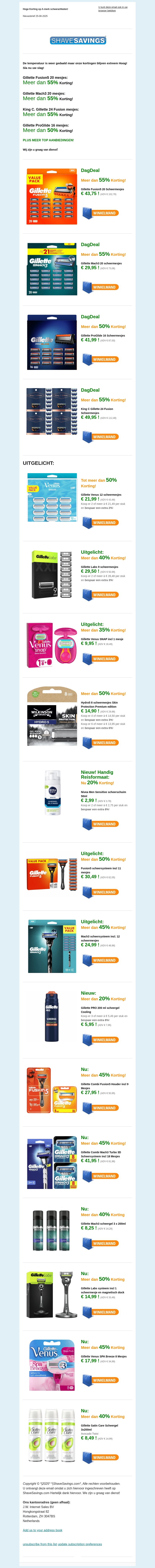Goeie Dag..Deals! 50% Korting! Gillette ProGlide, Fusion5, Mach3, Venus -50% + meer TOP AANBIEDINGEN!