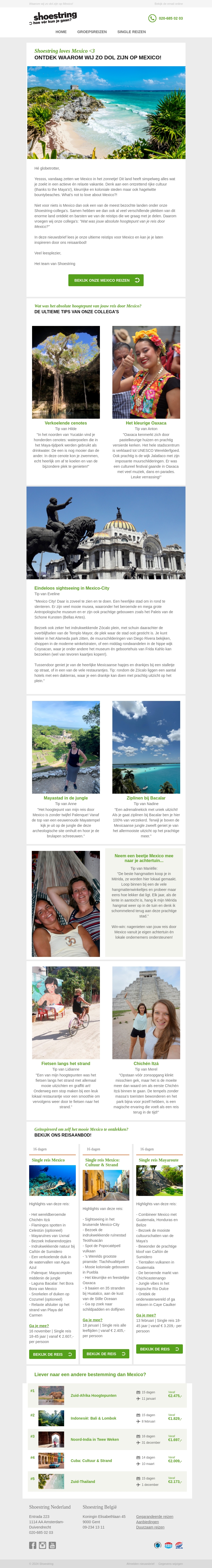 Mexico roept! Laat je inspireren door adembenemende landschappen, rijke cultuur en gastronomie. Ontdek de jungles, historische steden en avonturen zoals ziplinen en duiken. Ervaar de hartelijke gastvrijheid en kleurrijke tradities. Ga jij met ons mee op avontuur in Mexico?