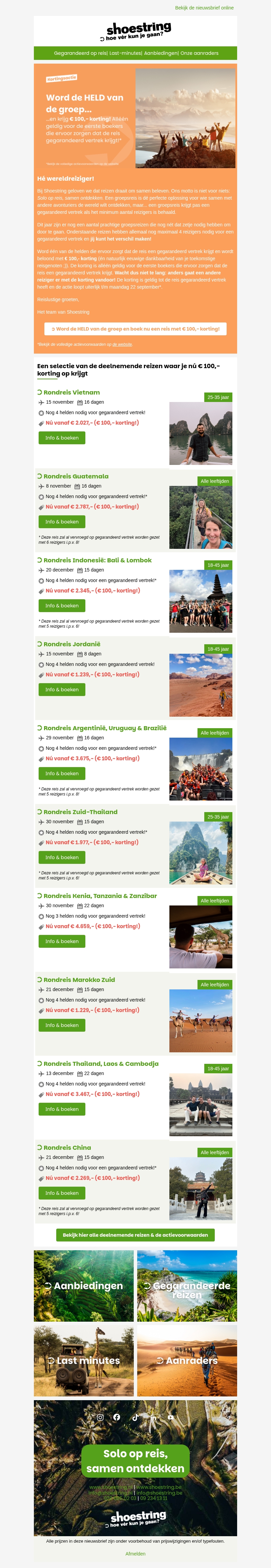 Nú € 100,- korting op ALLE reizen