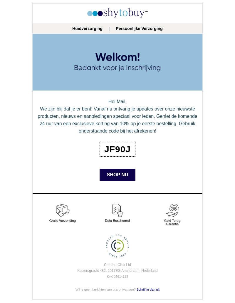 Hoi Mail, we zijn blij dat je er bent! Vanaf nu ontvang je updates over onze nieuwste producten, nieuws en aanbiedingen speciaal voor leden. Geniet van 10% korting op je eerste bestelling met de code JF90J.