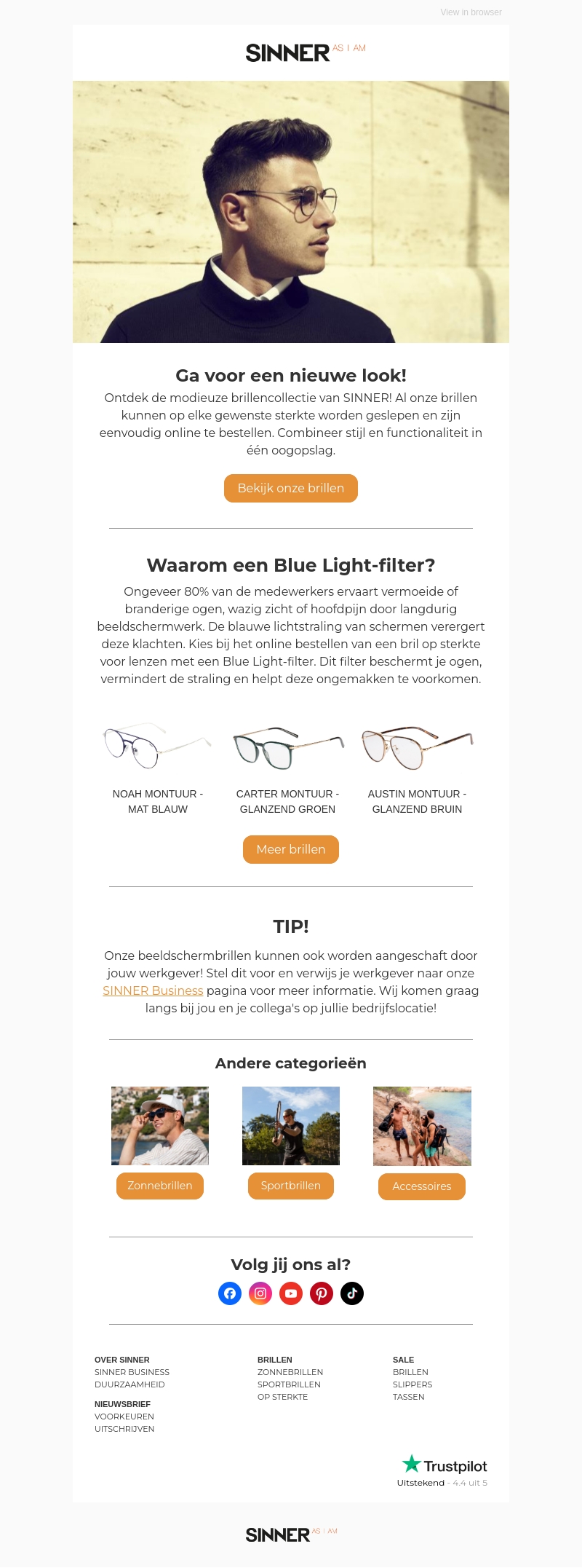 Ga voor een nieuwe look met de modieuze brillencollectie van SINNER. Onze brillen kunnen op elke gewenste sterkte worden geslepen en zijn eenvoudig online te bestellen. Kies voor lenzen met een Blue Light-filter om ongemakken door beeldschermwerk te verminderen.