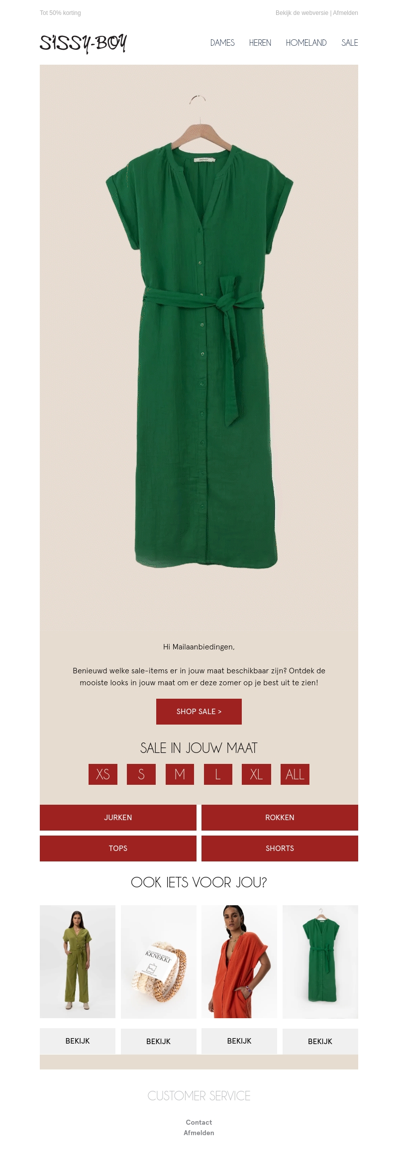 Hi Mailaanbiedingen, benieuwd naar welke sale-items er in jouw maat beschikbaar zijn? Ontdek de mooiste looks in jouw maat en shop nu bij Sissy-Boy! Mis deze kans niet om stijlvol voor de dag te komen.