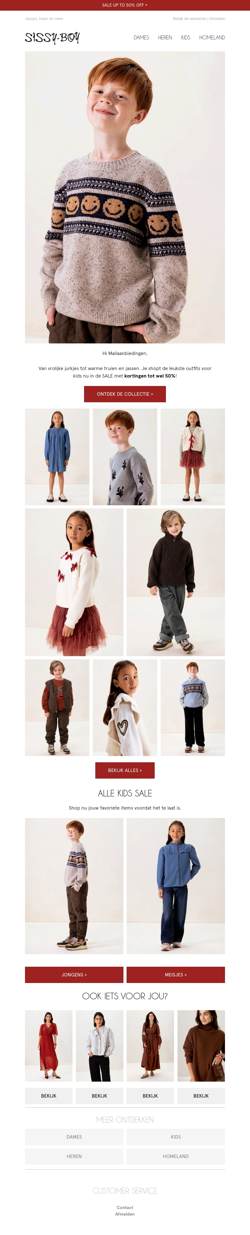 Bij Sissy-Boy is er nu een grote kindersale met kortingen tot wel 50%! Ontdek vrolijke jurkjes, warme truien en trendy jassen voor zowel jongens als meisjes. Mis deze kans niet om stijlvolle outfits voor je kinderen te scoren. Bekijk de collectie en shop jouw favoriete items voordat het te laat is. Ook voor volwassenen zijn er prachtige opties beschikbaar.