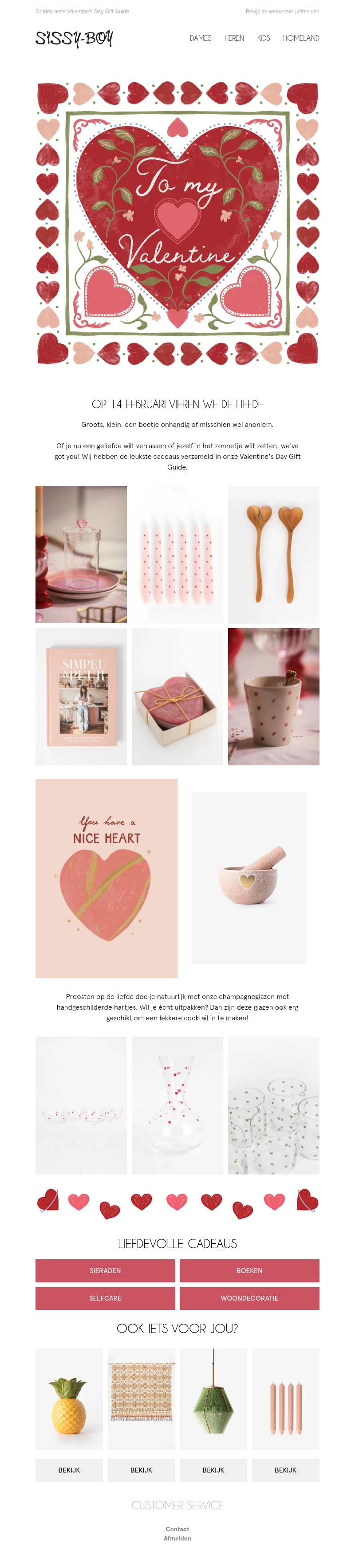 Vier Valentijnsdag met Sissy-Boy's zorgvuldig samengestelde cadeau gids. Of je nu je geliefde wilt verrassen of jezelf in het zonnetje wilt zetten, wij hebben voor ieder wat wils. Van sieraden en boeken tot zelfzorg en woondecoraties, ontdek de mooiste cadeaus. Proost met onze handgeschilderde glazen op de liefde. Laat je inspireren door onze unieke selectie.