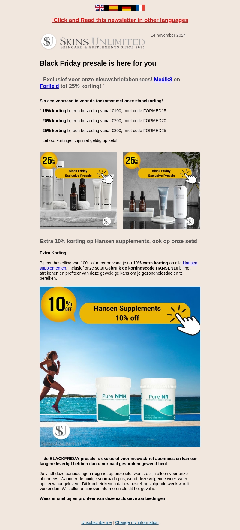 Profiteer van onze vroege Black Friday presale met kortingen tot 25% exclusief voor onze nieuwsbriefabonnees. Ontvang extra 10% korting op alle Hansen supplementen, inclusief sets. Gebruik kortingscodes voor maximale besparingen.