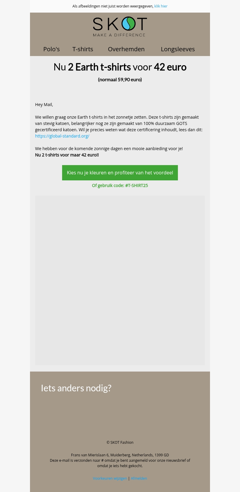 Pak deze kortingscode: #T-SHIRT25