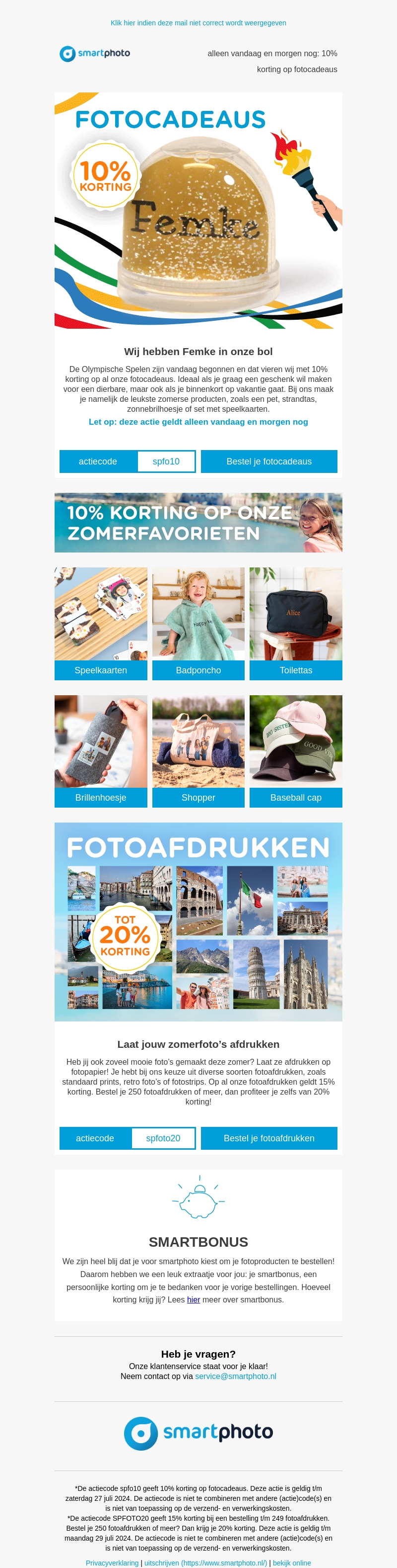 Alleen vandaag en morgen nog: 10% korting op fotocadeaus bij Smartphoto! Maak je zomervakantiefoto's extra speciaal met gepersonaliseerde producten zoals speelkaarten, petten, en nog veel meer. Mis deze geweldige zomeractie niet!