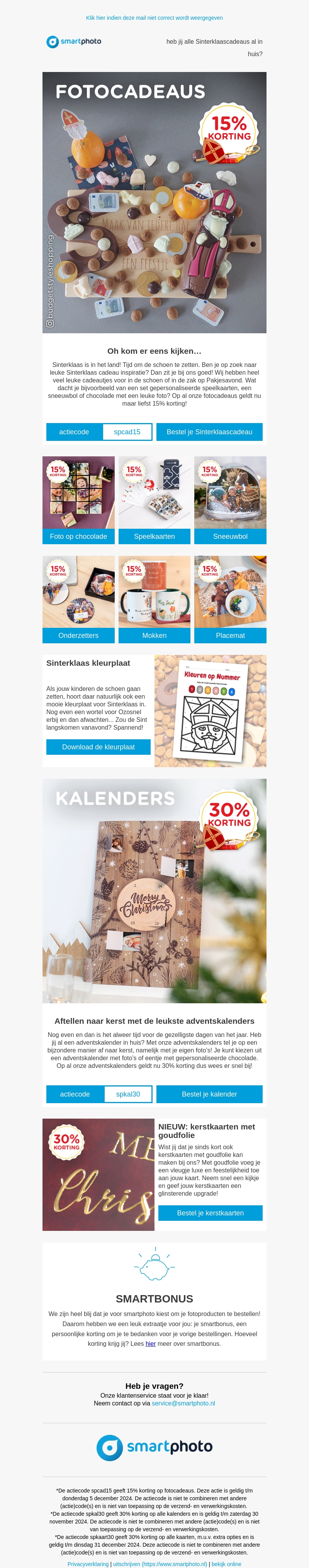 Sinterklaas staat voor de deur en Smartphoto biedt een fantastische korting van 15% op unieke fotocadeaus. Of je nu op zoek bent naar gepersonaliseerde mokken, speelkaarten of een kleurrijke sneeuwbol, er is voor ieder wat wils. Profiteer ook van 30% korting op adventskalenders, perfect om af te tellen naar Kerst. Mis deze feestelijke kortingen niet en maak deze Sinterklaas onvergetelijk.