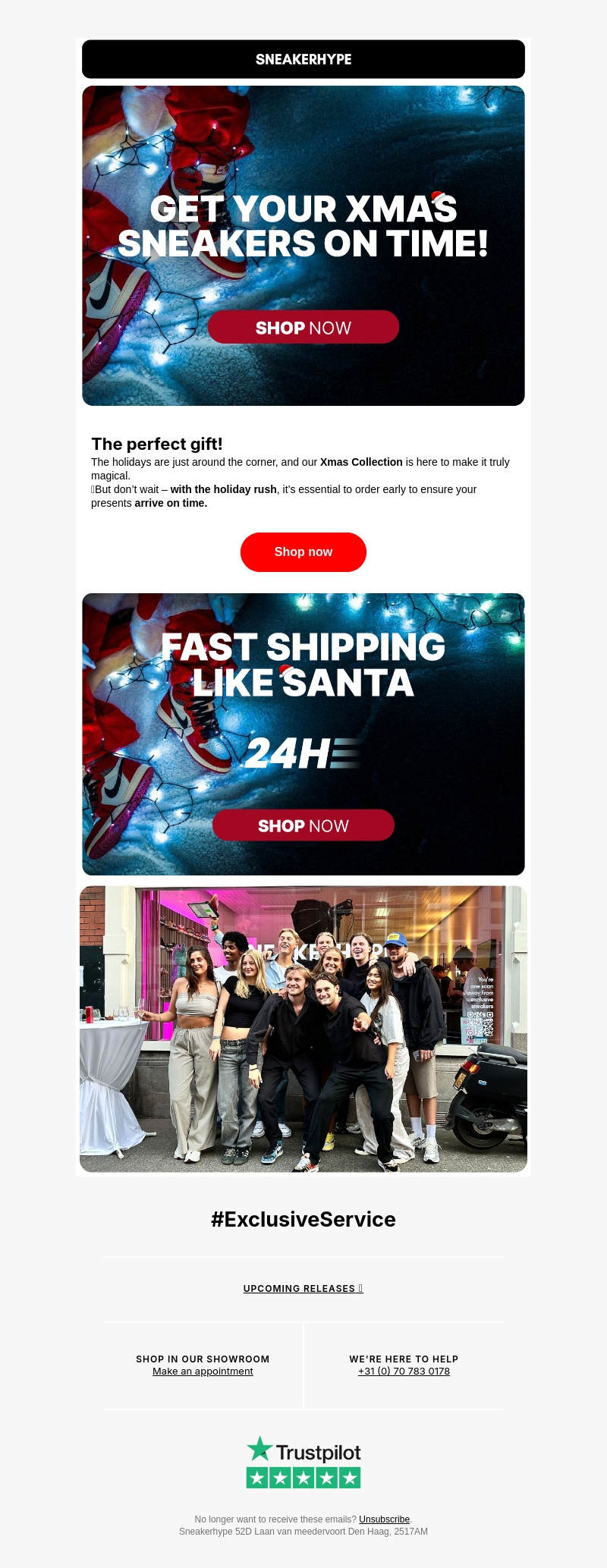 Bereid je voor op de feestdagen met onze exclusieve kerstcollectie sneakers. We bieden snelle verzending binnen 24 uur, zodat je cadeaus op tijd arriveren. Mis het niet om je stijl te vernieuwen voor de feestdagen. Bestel vandaag nog en geniet van de magie van kerst. Bezoek onze showroom of shop online. #ExclusiveService