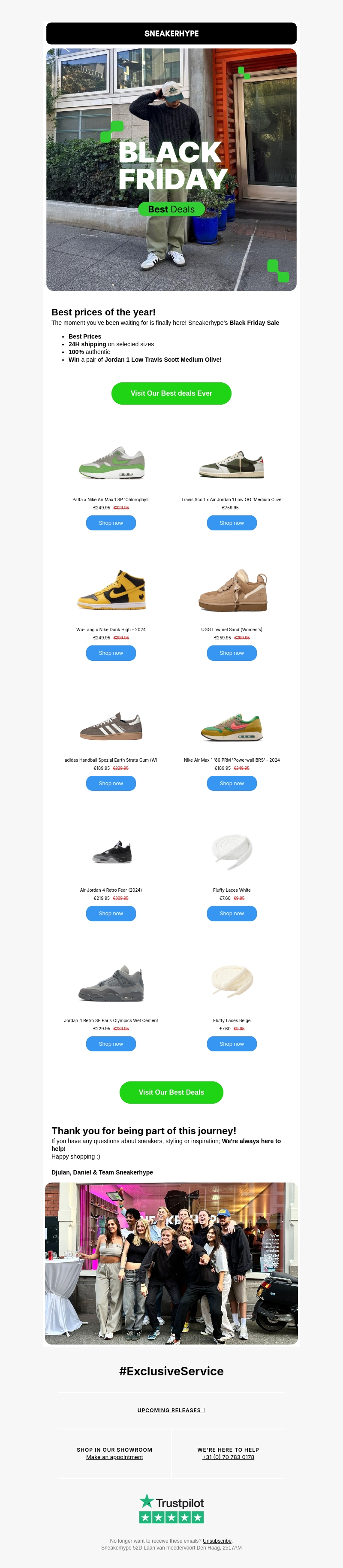 Ontdek de ultieme Black Friday aanbiedingen bij Sneakerhype! Profiteer van kortingen op populaire sneakers zoals Nike en Air Jordan. Gratis verzending, veilige betaling en exclusieve cadeaus staan klaar voor jou. Mis deze kans niet om je schoenencollectie uit te breiden!