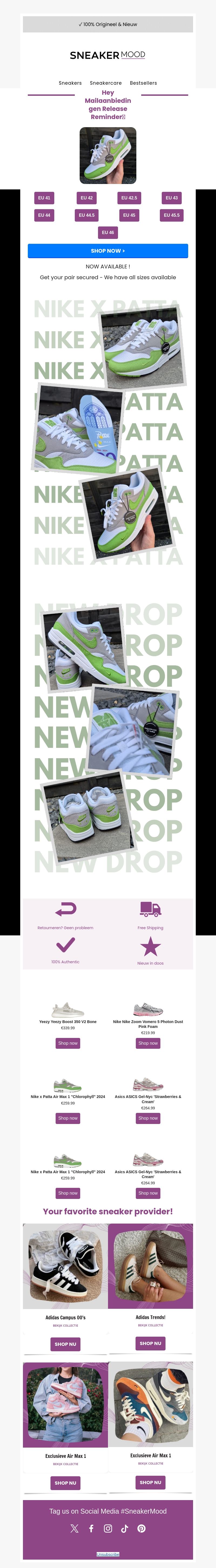 Mis het niet! De nieuwste Nike x Patta sneakers zijn gearriveerd en beschikbaar in alle maten. Bestel nu en geniet van gratis verzending en 100% originele producten. Shop jouw favoriete nieuwe release vandaag nog bij SneakerMood!