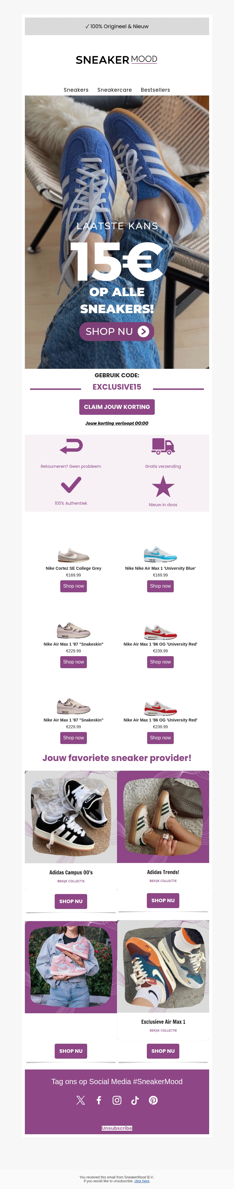Laatste kans, €15 korting op exclusieve sneakers! 👟