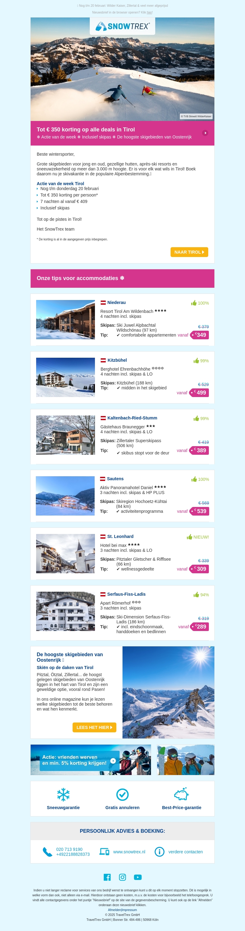 Ervaar de ultieme wintersportvakantie in Tirol met kortingen tot €350 per persoon. Kies uit verschillende accommodaties en geniet van inclusief skipassen. Boek nu en ontdek de mooiste skigebieden van Oostenrijk met SnowTrex.