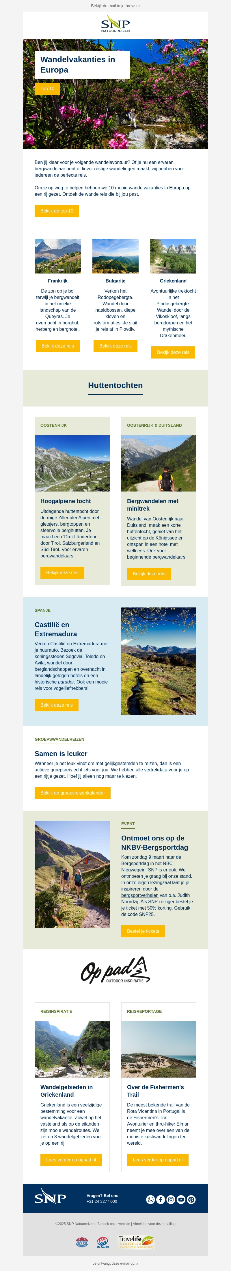 Ontdek de top 10 wandelvakanties in Europa, specifiek samengesteld voor avontuurlijke en ontspannen reizigers. Bezoek unieke bestemmingen zoals Frankrijk, Bulgarije en Griekenland. Of kies voor huttentochten in Oostenrijk en Duitsland. Verken de natuur en bewonder de schoonheid van Europa. Ideaal voor groepsreizen of een solo-avontuur.