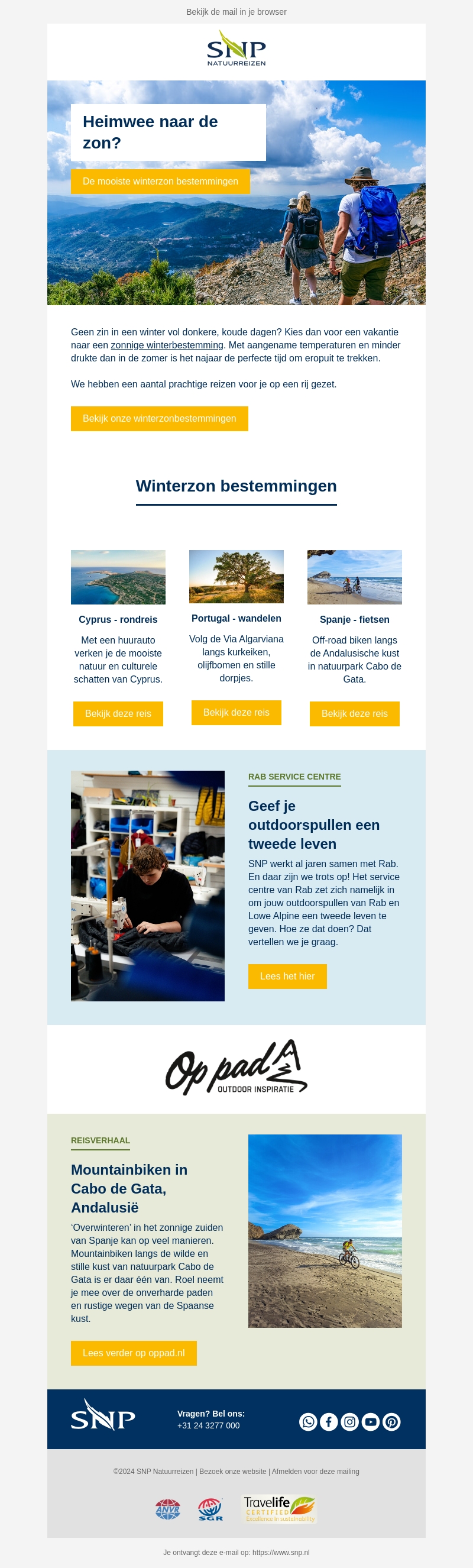 Geen zin in een donkere winter? Kies dan voor een zonnige winterbestemming. Geniet van aangename temperaturen en minder drukte. Verken prachtige reizen zoals rondreizen in Cyprus, wandelen in Portugal en fietsen in Spanje. Ontdek hoe je je outdoorspullen een tweede leven kunt geven en lees een inspirerend reisverhaal over mountainbiken in Andalusië.
