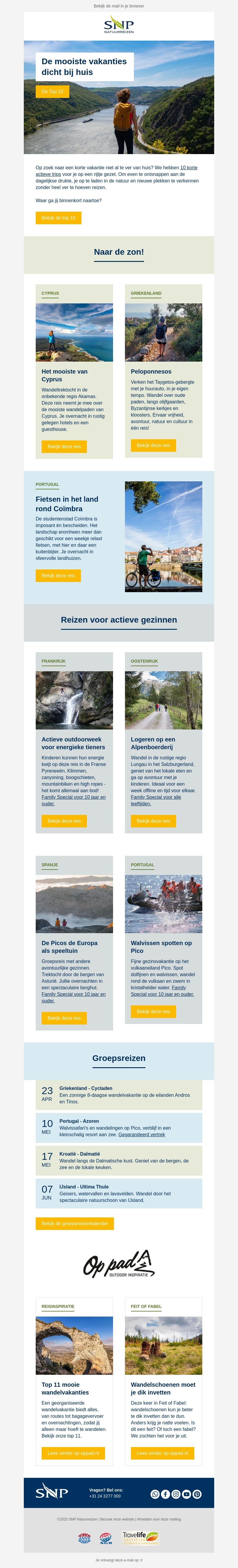Op zoek naar een korte vakantie niet ver van huis? Wij hebben de top 10 korte uitjes voor je op een rij gezet. Of je nu houdt van zon, natuur, of actieve gezinsreizen, er is voor ieder wat wils. Ontdek prachtige bestemmingen zoals het zonnige Cyprus of de avontuurlijke Picos de Europa. Klik verder en laat je inspireren voor je volgende reis!