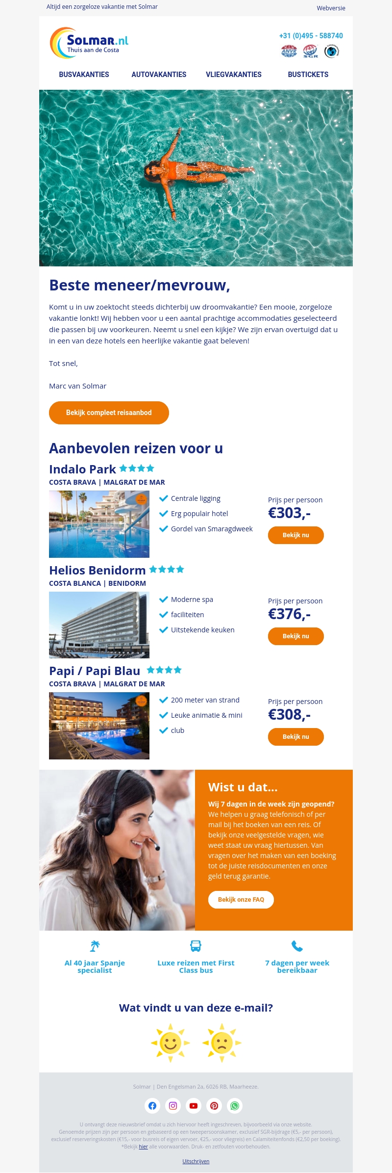 Droomt u van een vakantie in Spanje? Bekijk ons aanbod aan topaccommodaties in Costa Brava en Costa Blanca. Geniet van luxe reizen met een First Class bus, moderne faciliteiten, en meer. Boek nu uw onvergetelijke vakantie!