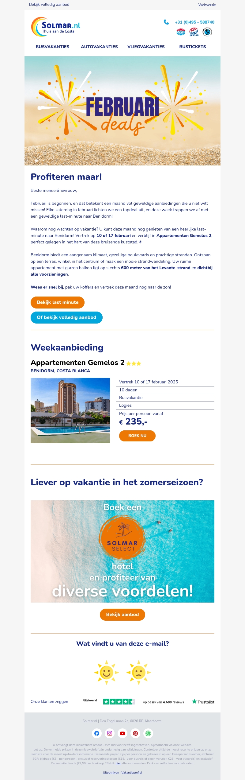 Ontsnap deze februari naar zonnige bestemmingen met onze geweldige deals. Geniet van last-minute vakanties naar Benidorm met verblijven in Appartementen Gemelos 2. Ontspan op prachtige stranden en ontdek gezellige boulevards. Boek nu en profiteer van voordelige prijzen.