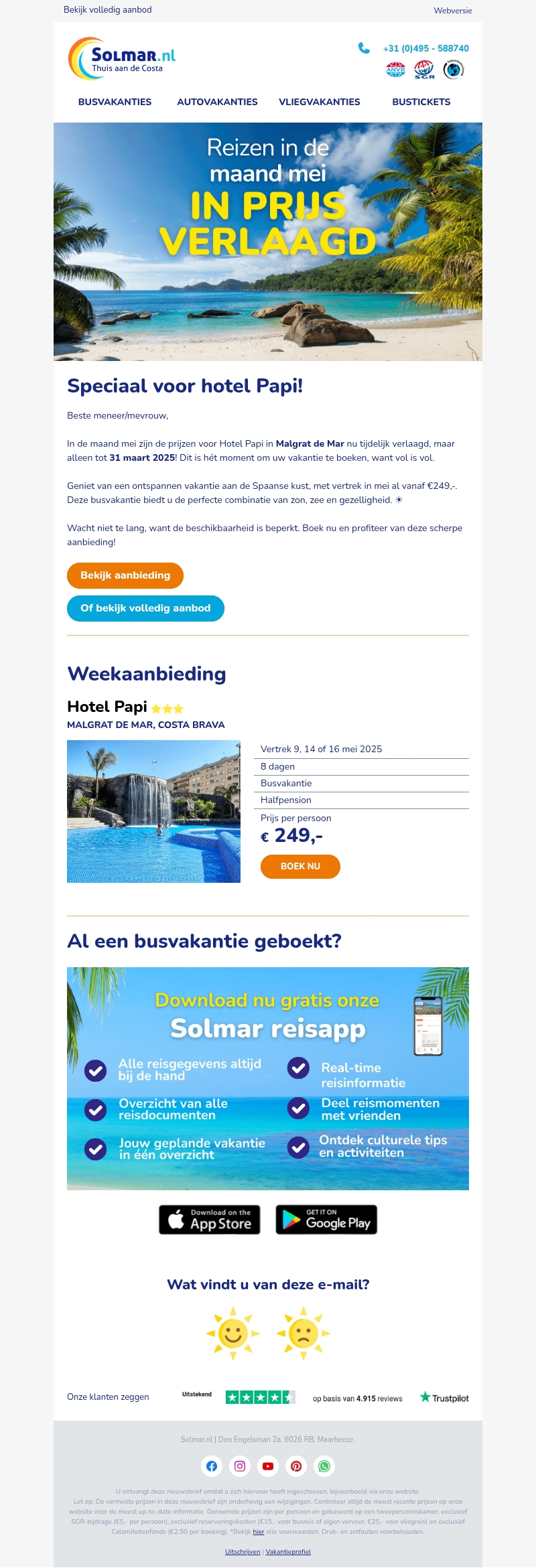 De prijzen voor het verblijf in Hotel Papi in Malgrat de Mar zijn nu verlaagd. Geniet van een ontspannende vakantie aan de Spaanse kust met vertrek vanaf €249. Deze aanbieding geldt tot 31 maart 2025, dus wacht niet te lang. Boek vandaag nog en beleef de perfecte combinatie van zon, zee en gezelligheid!