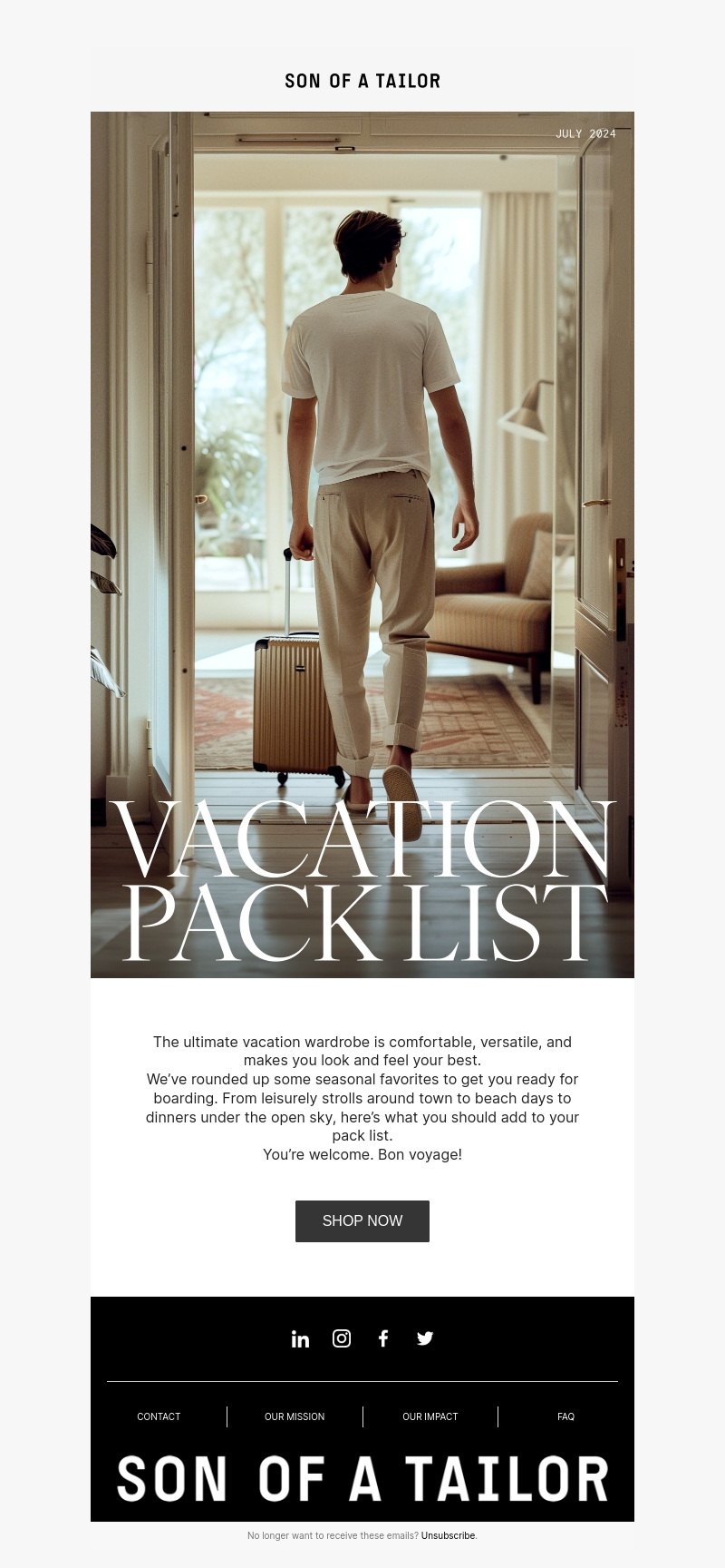 De ultieme vakantiewardrobe is comfortabel, veelzijdig en laat je er op je best uitzien. We hebben seizoensfavorieten verzameld om je klaar te maken voor vertrek. Van rustige stadswandelingen tot stranddagen en diners in de open lucht, hier is wat je moet inpakken. Bon voyage!