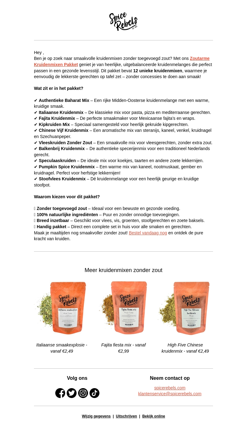 Bespaar nu 26% op het zoutarme kruidenmix pakket