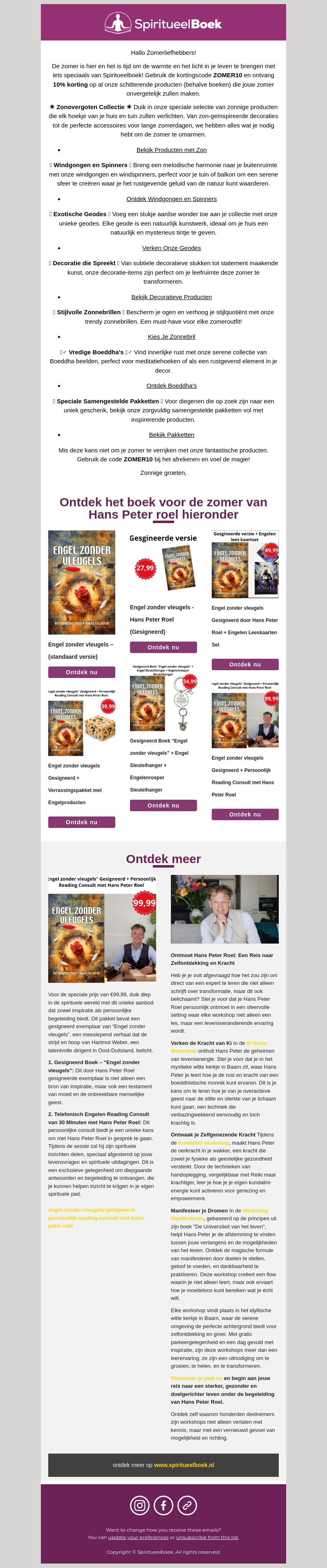 De zomercollectie van SpiritueelBoek is gearriveerd! Ontvang 10% korting op een breed scala aan spirituele boeken en accessoires. Van zonovergoten collecties en exotische geuren tot stijlvolle zonnebrillen, er is voor ieder wat wils. Mis deze kans niet om je zomer magisch en inspirerend te maken.
