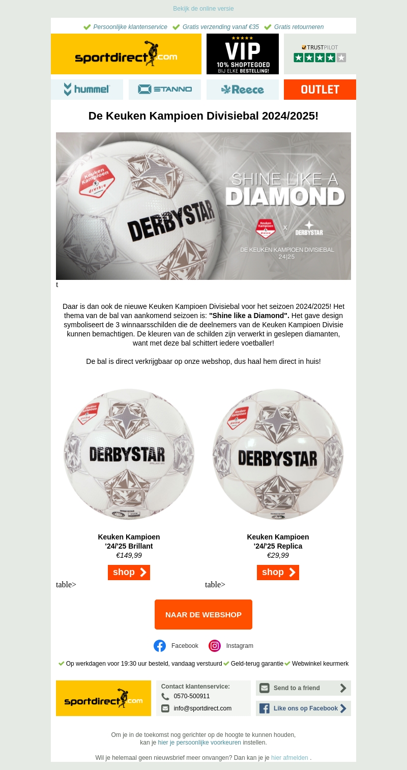 De nieuwe Keuken Kampioen Divisiebal voor het seizoen 2024/2025 is nu beschikbaar! Deze bal, ontworpen door Derbystar, beschikt over het thema 'Shine Like a Diamond'. Met een exclusief design met diamanten, straalt deze bal op het veld. Haal de bal nu in huis via onze webshop.