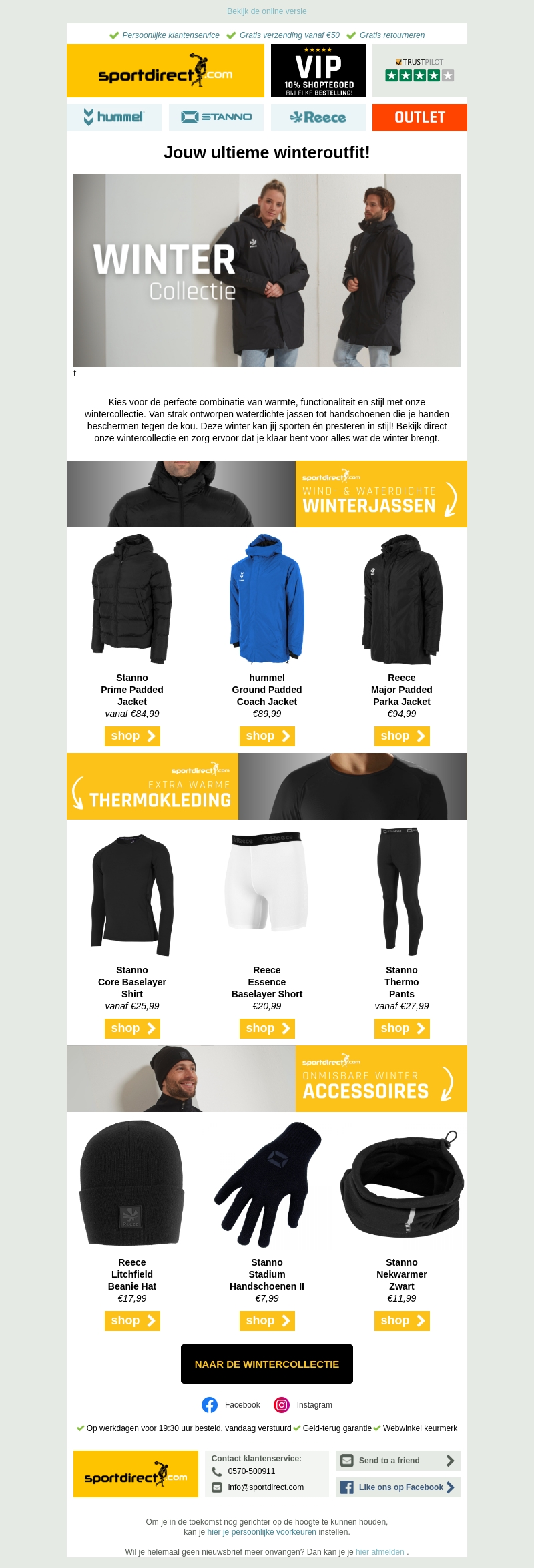 Bereid je voor op de winter met de nieuwste collectie van Sportdirect. Kies voor stijlvolle en functionele winterjassen, thermokleding en accessoires. Onze producten zijn water- en winddicht om je te beschermen tegen de kou. Ontdek onze nieuwste items en blijf deze winter warm en comfortabel.
