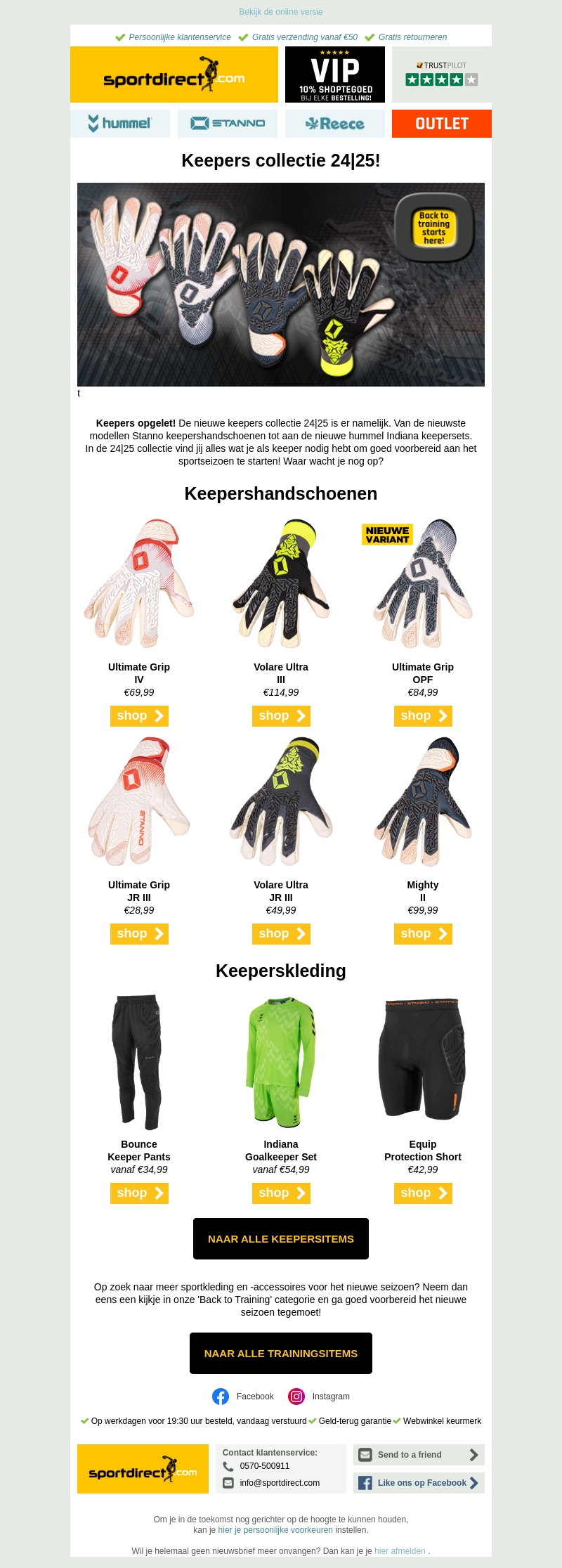 Keepers opgelet! De nieuwe keepers collectie 24|25 is er. Ontdek de nieuwste Stanno keepershandschoenen en hummel Indiana keepersets. Perfect voor het nieuwe sportseizoen. Mis het niet!