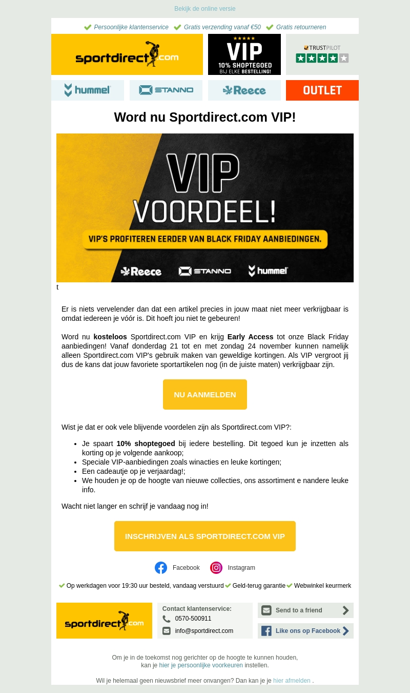 Word vandaag nog lid van Sportdirect.com VIP en krijg als eerste toegang tot de geweldige Black Friday aanbiedingen. Geniet van 10% shoptegoed bij elke bestelling en profiteer van speciale VIP-acties. Meld je aan en ontvang als VIP vroegtijdige toegang tot exclusieve kortingen.