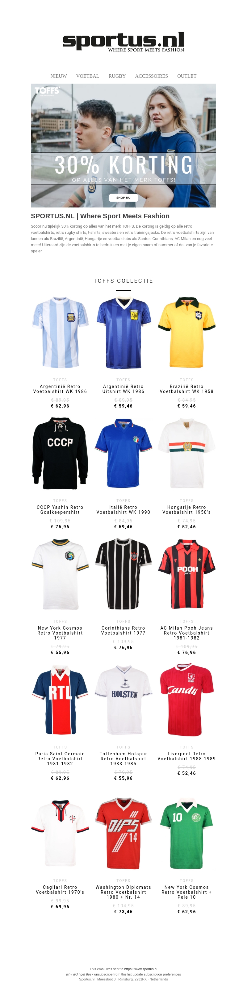 SALE: 30% Korting op alles van TOFFS | Retro Voetbalshirts, T-Shirts, Trainingsjacks