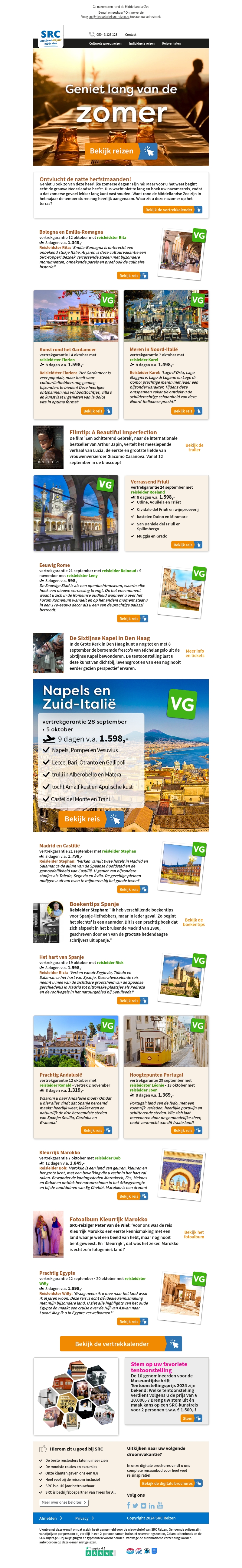 Ontsnap aan de natte herfstmaanden en verleng je zomer met onze fantastische reisaanbiedingen. Bezoek prachtige plekken zoals Bologna, Emilia-Romagna, Friuli en Rome. Ervaar de schoonheid van Napels, Zuid-Italië, Spanje en Marokko. Boek nu jouw ideale nazomer vakantie!