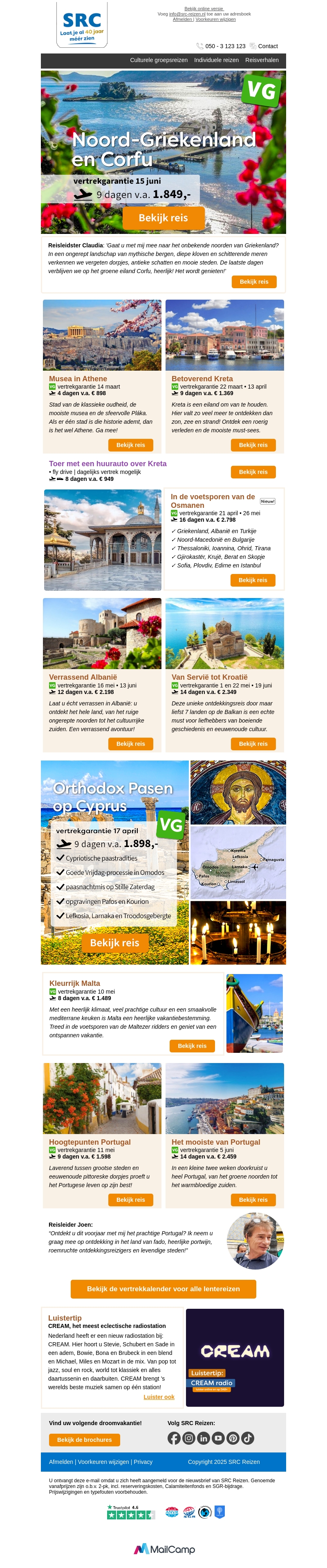 Vier de lente in de Méditerranée met onvergetelijke reizen naar Noord-Griekenland en Cyprus. Bezoek historische steden, geniet van kleurrijke festivals en ontdek prachtige landschappen. Beschikbare vertrekdata en aantrekkelijke prijzen vanaf €1.849. Mis deze unieke kans niet om de schoonheid van verschillende landen te ervaren. Bezoek de reiswebsite voor meer details en boek vandaag nog jouw avontuur.