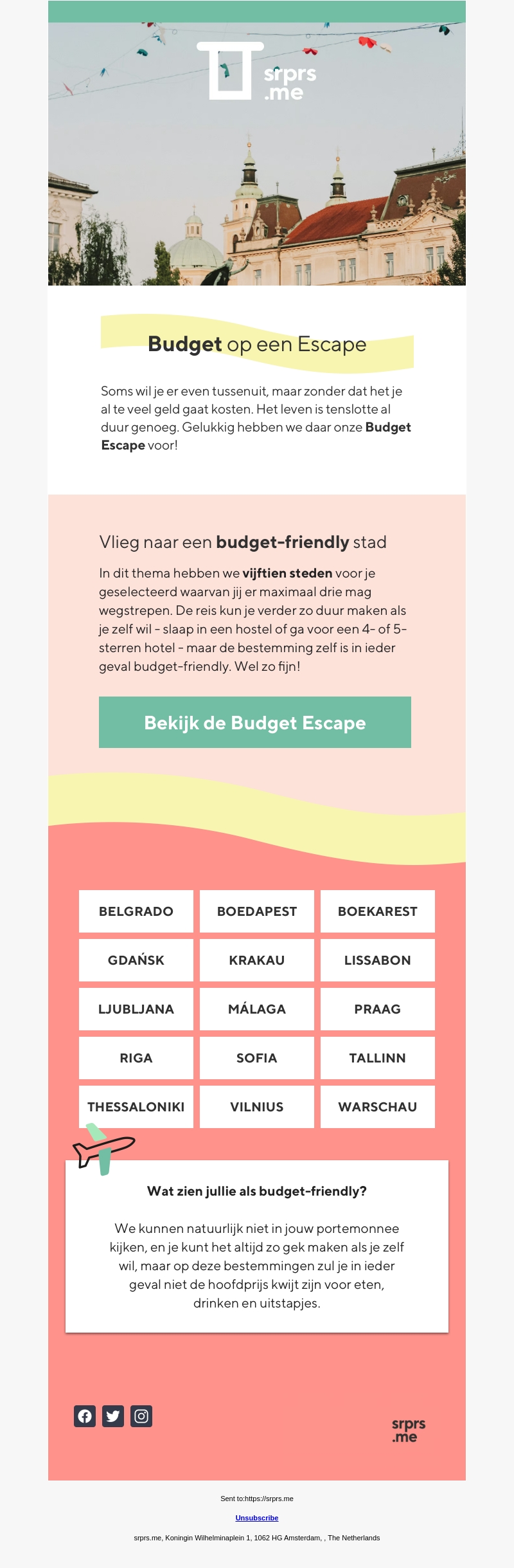 Soms wil je er even tussenuit zonder veel geld uit te geven. Ons Budget Escape biedt jou vijftien budget-vriendelijke steden om uit te kiezen. Boek een voordelige vakantie en geniet van geweldige bestemmingen zonder je portemonnee te legen.