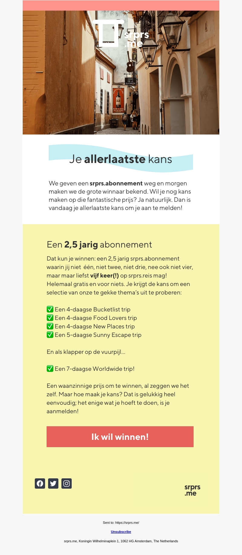Je laatste kans om 5 srprs.reizen te winnen 😱