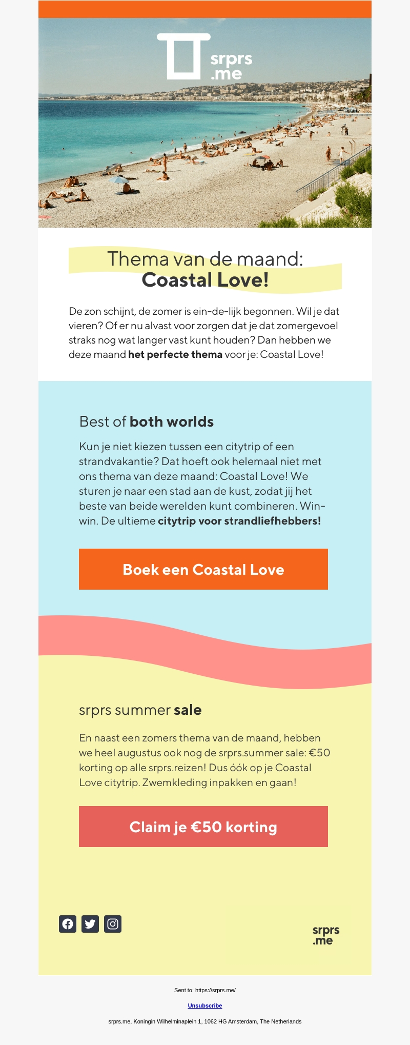 Zon, zee en stad: beleef het allemaal met ons thema van de maand 'Coastal Love'. Geniet van het beste van beide werelden terwijl je een stad aan de kust verkent. Boek nu je perfecte zomervakantie en profiteer van de srprs.summer sale met €50 korting!