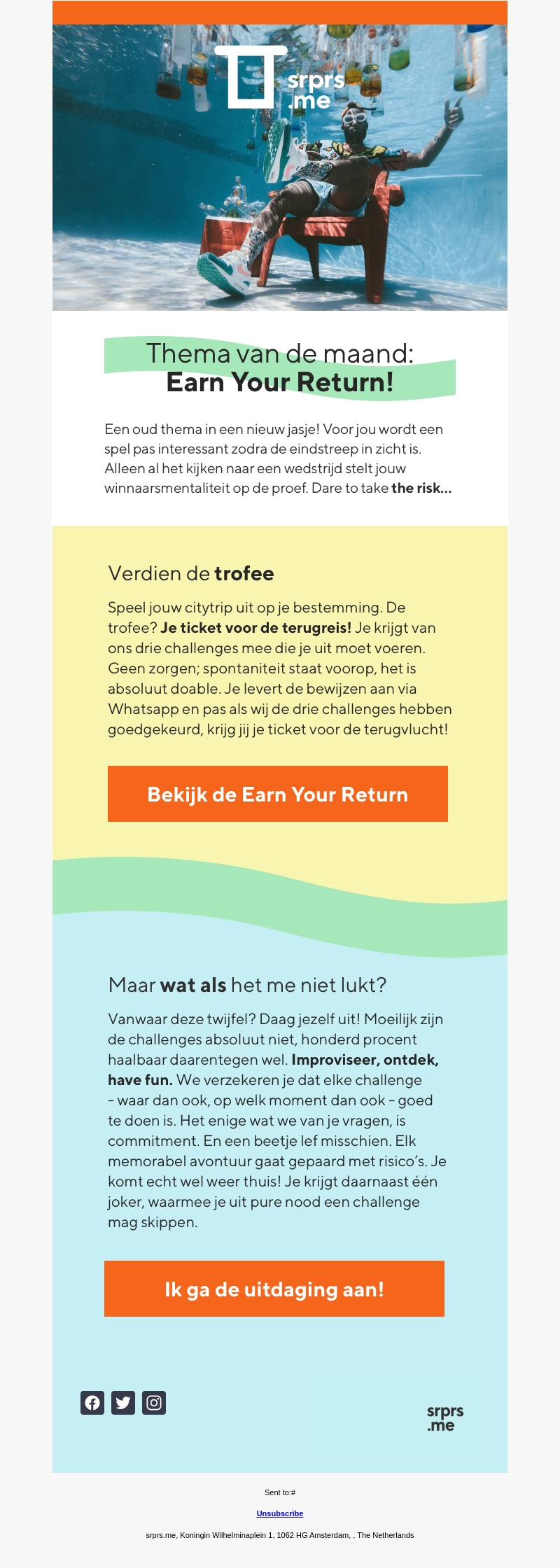 Maak je klaar voor een spannend thema: Earn Your Return! Met dit concept wordt elke citytrip een avontuur waarbij je uitdagende opdrachten moet voltooien. Haal de finish en verdien je ticket voor de terugreis. Improviseer, ontdek en heb vooral plezier tijdens je reis. Durf jij de uitdaging aan te gaan en een onvergetelijk avontuur te beleven?
