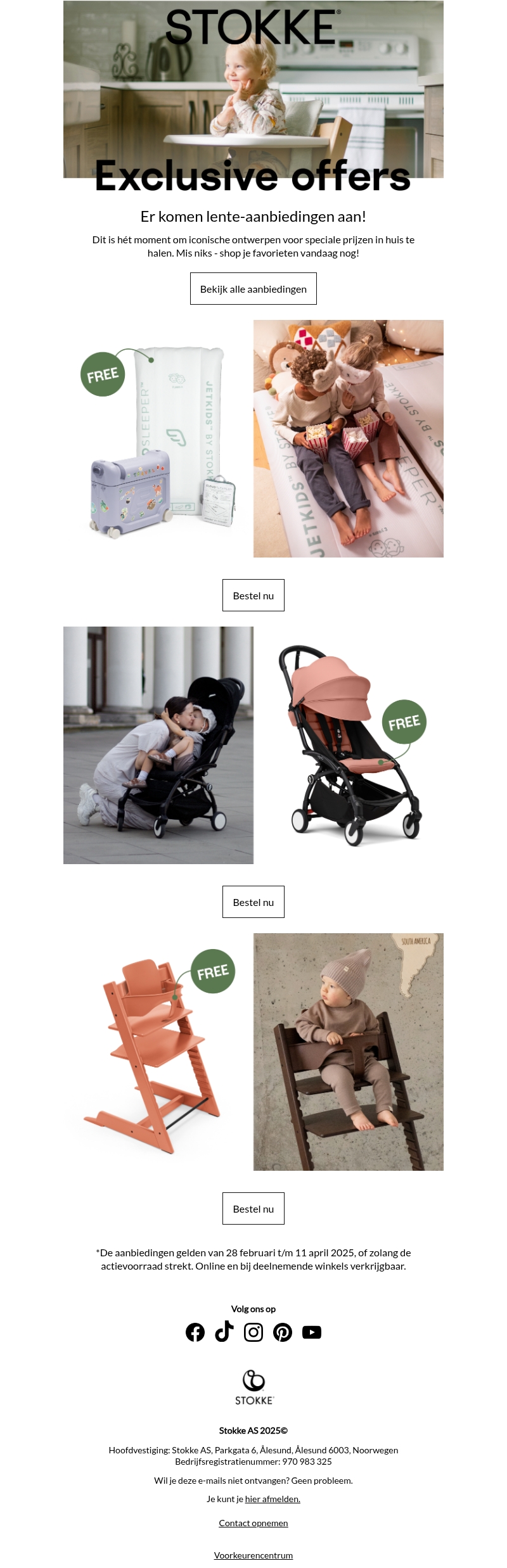 Stokke presenteert exclusieve lente-aanbiedingen op iconische ontwerpen. Van handige kinderwagens tot comfortabele stoelen, er is voor elk wat wils. Maak gebruik van speciale prijzen en mis de kans niet om je favorieten in huis te halen. Bekijk alle aanbiedingen nu en bereid je voor op een stijlvolle lente met Stokke producten!