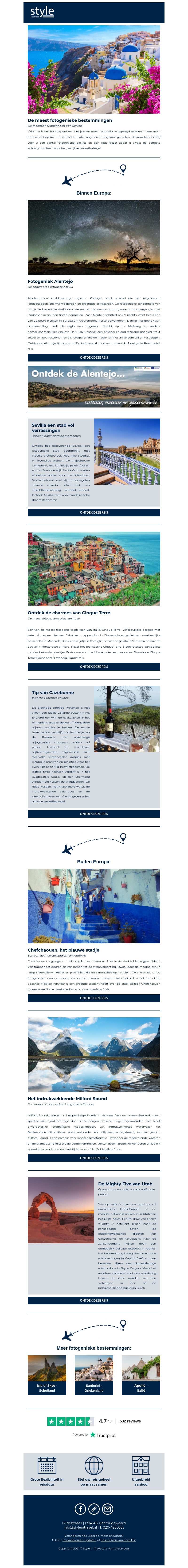 Ontdek de meest fotogenieke bestemmingen wereldwijd! Van het charmante Alentejo tot het kleurrijke Chefchaouen, deze nieuwsbrief neemt je mee op een visueel verbluffende reis. Laat je inspireren door de prachtige landschappen en unieke cultuur van elke locatie.
