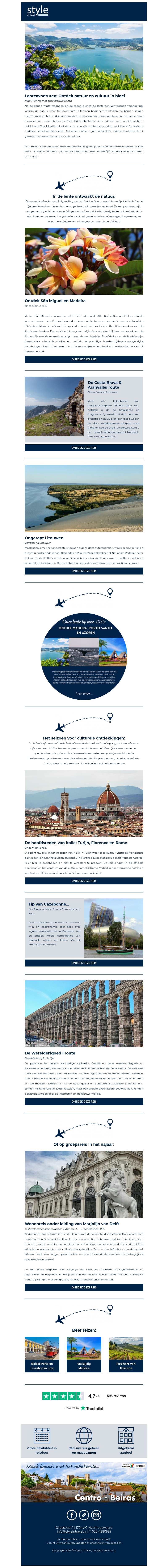 Verken de bloeiende schoonheid van de lente met reizen die de natuur en cultuur van bijzondere bestemmingen in de spotlight zetten. Ontdek verborgen parels, oude steden en adembenemende landschappen. Begin je avontuur en laat je inspireren door de vibrante kleuren en geuren die deze lente biedt.