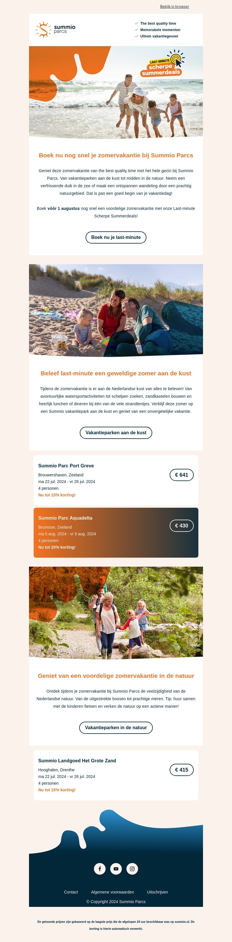 Geniet deze zomer van een fantastische vakantie aan de Nederlandse kust of in de natuur met Summio Parcs. Boek vóór 1 augustus om te profiteren van scherpe summerdeals! Verblijf in prachtige vakantieparken en creëer onvergetelijke momenten met je familie. Kies je favoriete bestemming en ontdek de beste last-minute aanbiedingen!