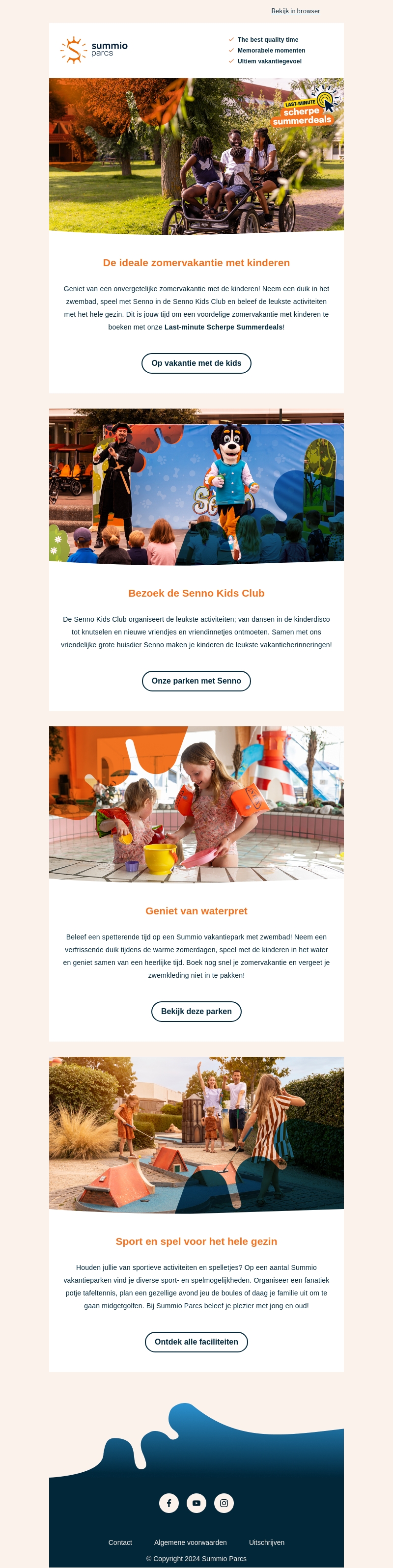 Beleef een onvergetelijke zomervakantie met je kinderen bij Summio Parcs. Neem een duik in het zwembad, bezoek de Senno Kids Club en geniet samen van waterpret. Ook sport- en spelactiviteiten voor jong en oud zijn beschikbaar. Boek snel je vakantie met onze Last-minute Scherpe Summerdeals!