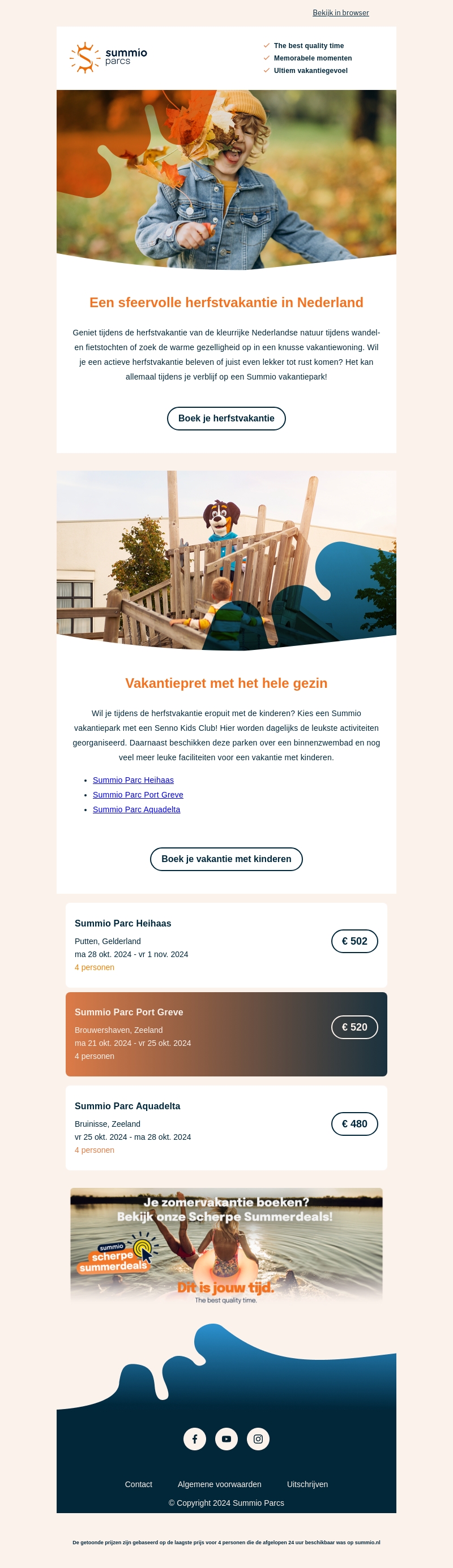 Ontsnap deze herfst naar de kleurrijke natuur van Nederland met Summio Parcs. Geniet van wandelingen, fietstochten en een knusse vakantiewoning. Onze parken bieden activiteiten voor het hele gezin, inclusief een Senno Kids Club. Boek nu voor een onvergetelijke vakantie!