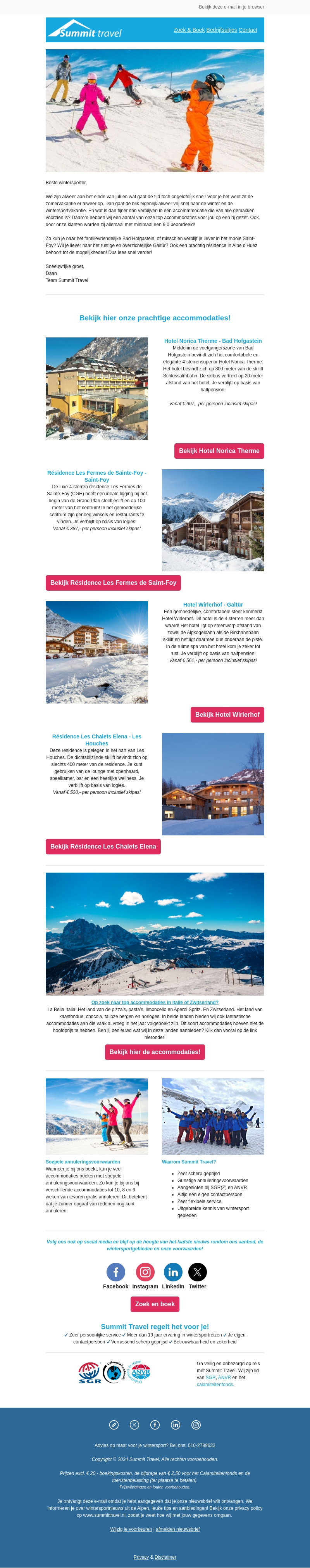 Beste wintersporter, de beste tijd van het jaar is aangebroken. Ontdek de top accommodaties zoals Hotel Norica Therme en RΓ©sidence Les Fermes de Sainte-Foy voor je ultieme wintersport ervaring. Boek nu en geniet volop!