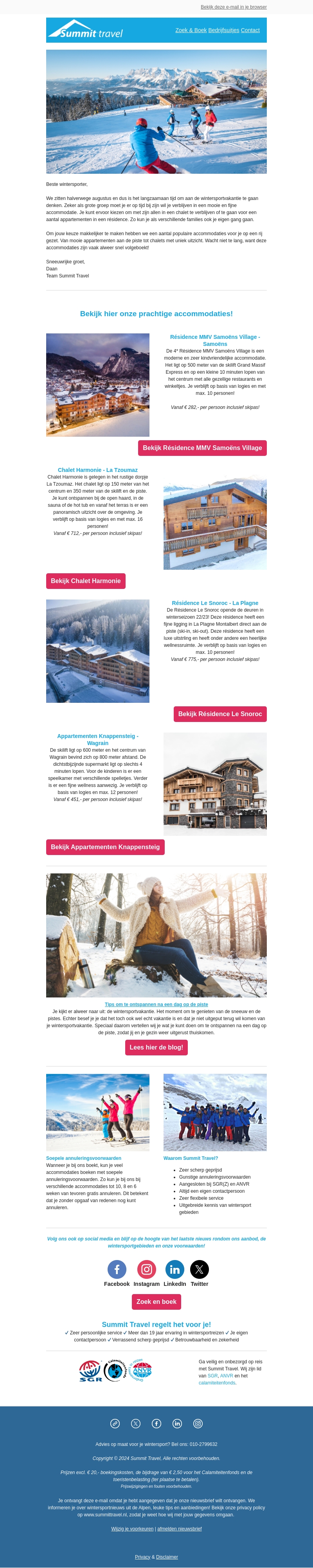 Ontdek geweldige skivakantie-accommodaties voor groepen bij Summit Travel! Kies uit diverse locaties zoals RΓ©sidence MMV SamoΓ«ns Village, Chalet Harmonie, RΓ©sidence Le Snoroc en Appartementen Knaepensteig. Mis onze exclusieve aanbiedingen inclusief skipassen niet.