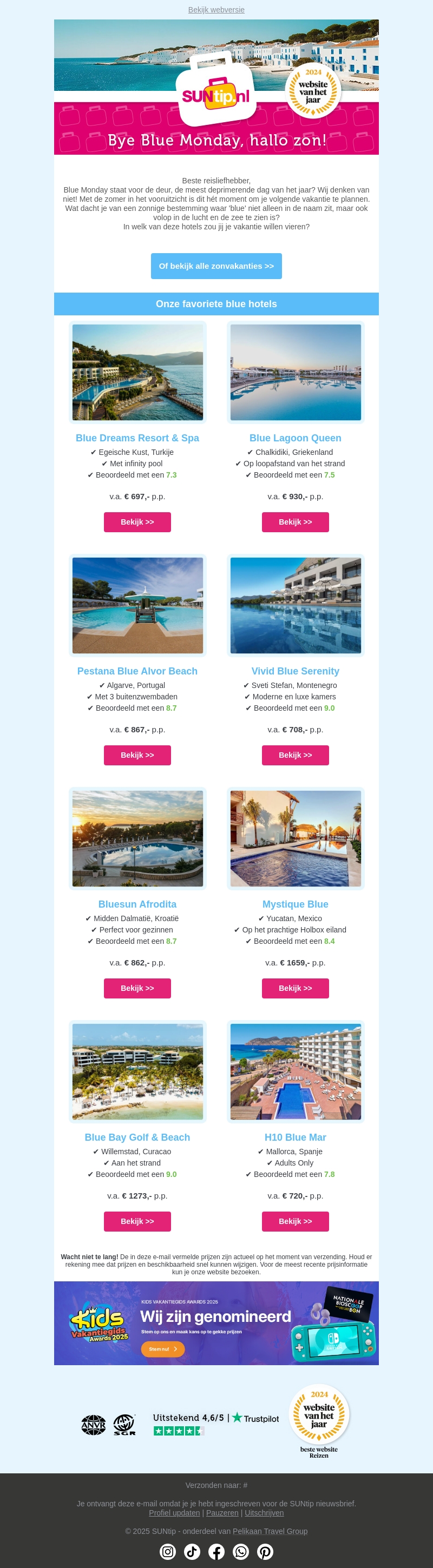 Blue Monday hoeft niet somber te zijn! Ontsnap naar de zon met geweldige vakantiedeals. Kies uit onze favoriete blue hotels en geniet van luxe accommodaties op de mooiste bestemmingen. Wacht niet te lang, boek jouw droomvakantie nu.